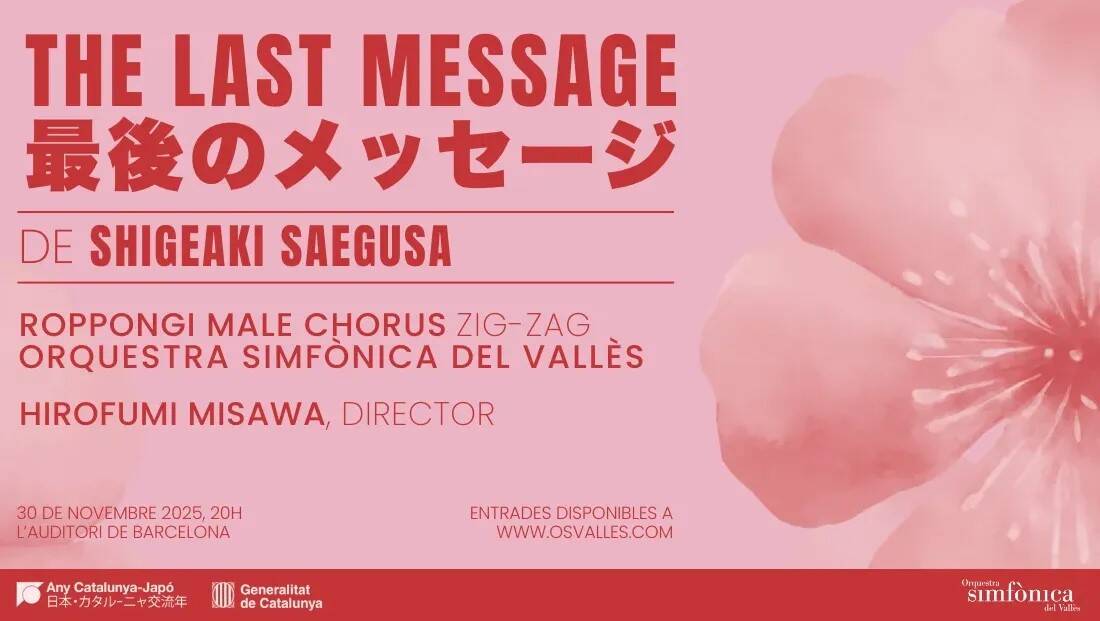 El Roppongi Male Chorus ZIG-ZAG y la Orquestra Simfònica del Vallès presentan por primera vez en Barcelona —y en todo el Estado español— la obra The Last Message del reconocido compositor japonés Shigeaki Saegusa. El concierto, bajo la dirección del maestro Hirofumi Misawa, tendrá lugar el próximo 30 de noviembre en L’Auditori de Barcelona.
